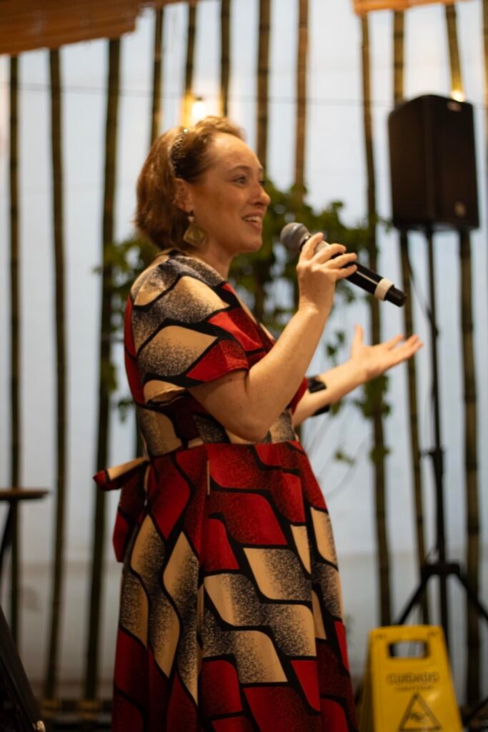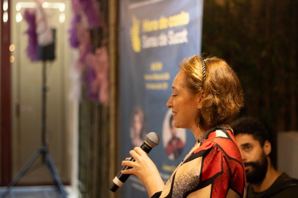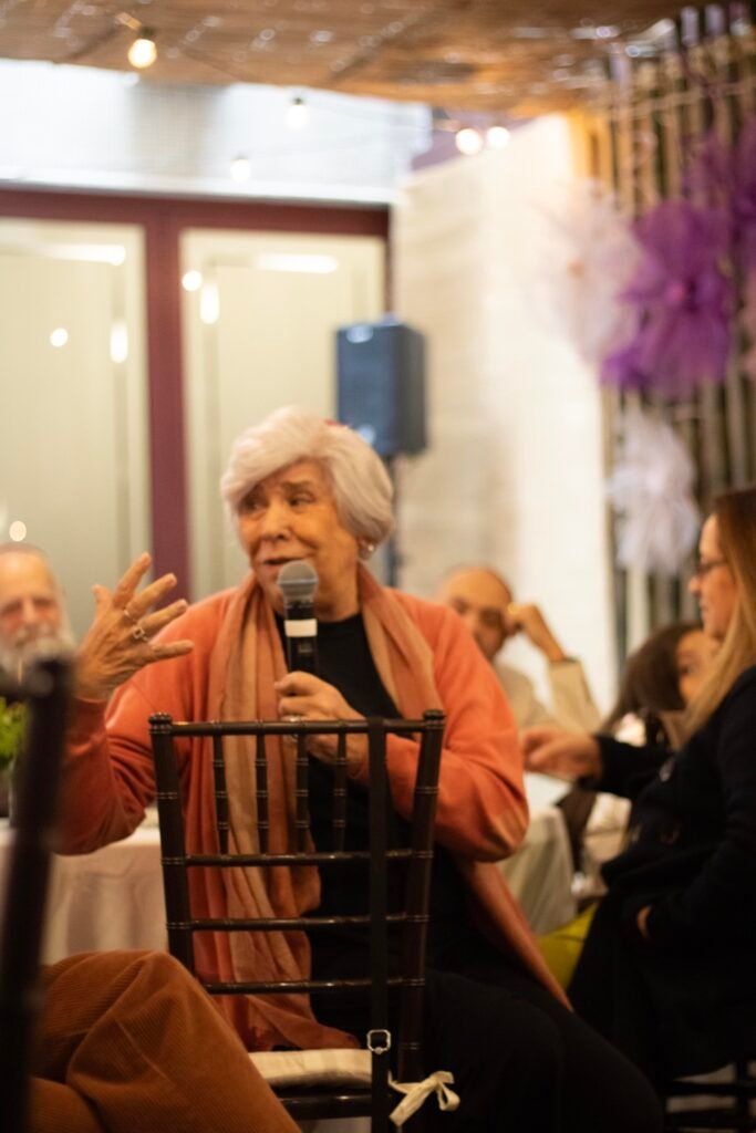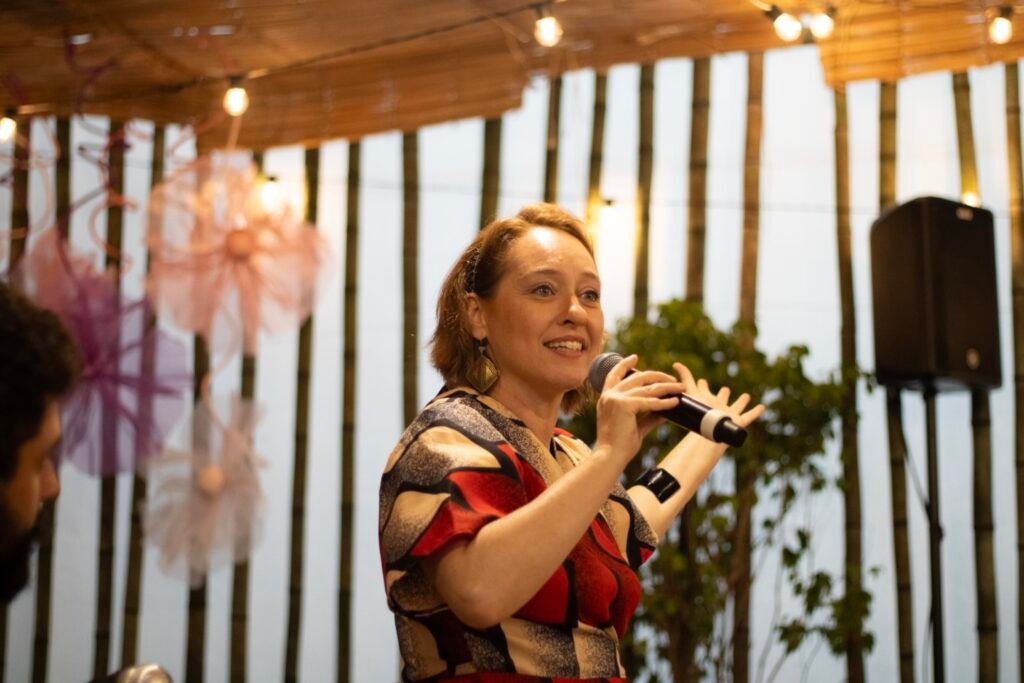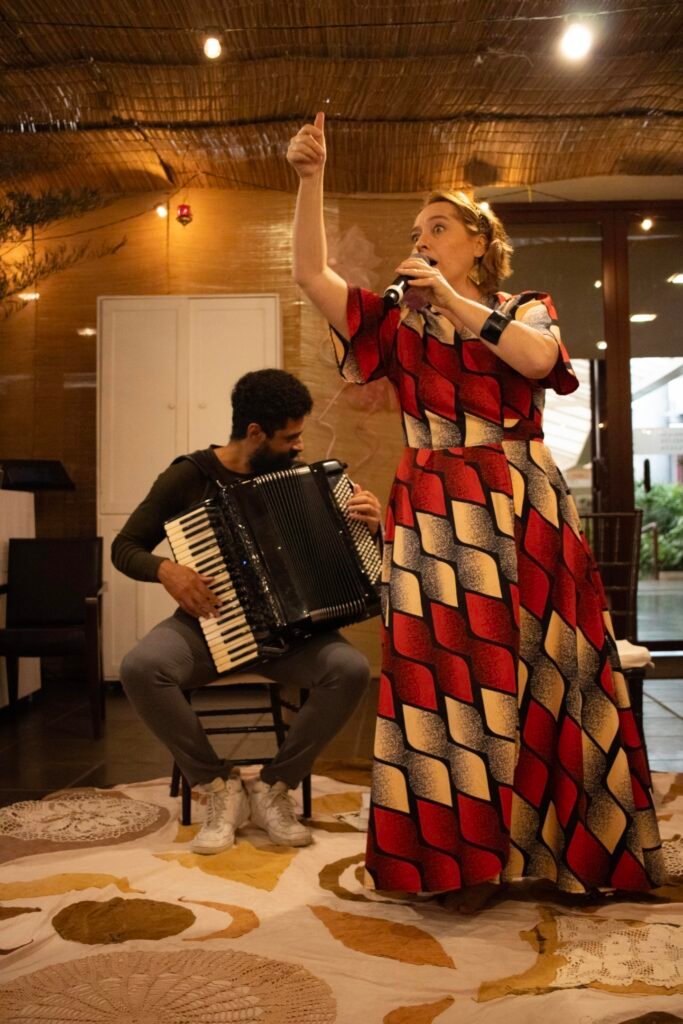 A atriz e narradora de histórias Dinah Feldman, com sua presença carismática e longa trajetória dedicada à tradição judaica, conduziu uma envolvente apresentação de contos que atravessam gerações. Suas narrativas, acompanhadas pela sensível trilha musical do pianista e acordeonista Lucas Coimbra, ecoaram temas universais como fé, coragem, memória e pertencimento, tocando o coração de todos os presentes.