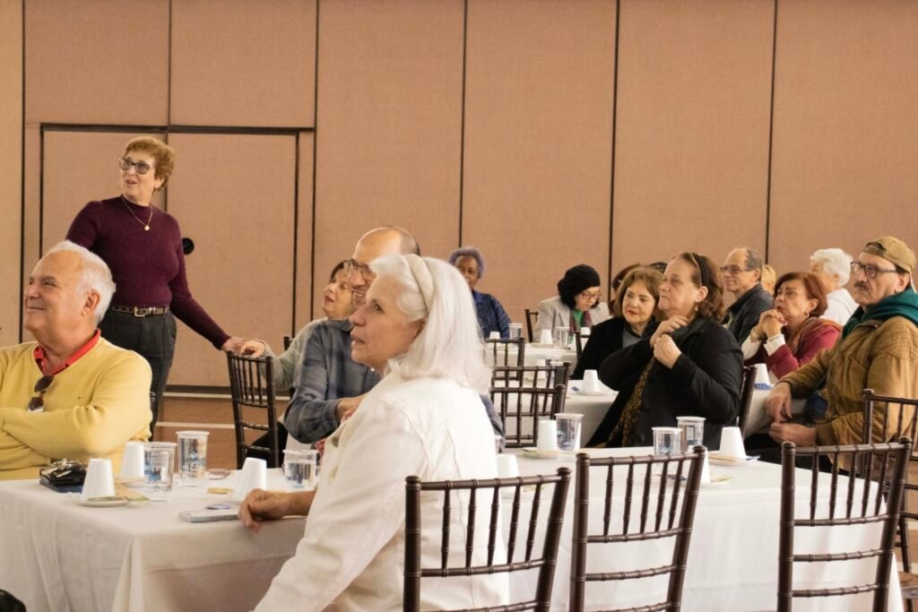 Durante a conversa, foram discutidos assuntos essenciais como Identidade, Pertencimento, Autocuidado e Estratégias para uma Velhice Ativa. A troca de experiências entre os 32 participantes foi marcada por momentos de descontração, aprendizados mútuos e comentários enriquecedores, que tornaram o encontro ainda mais inspirador.