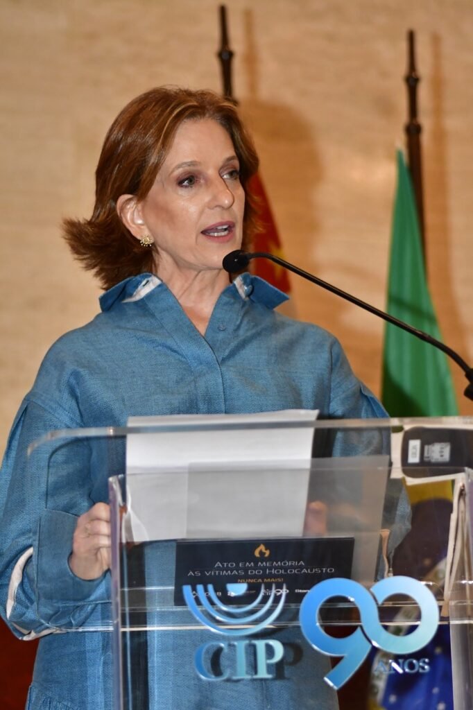 A cerimônia teve início com a execução do Hino Nacional Brasileiro, entoado por Sabrina Shalom. Na sequência, a presidente da CIP, Laura Feldman, destacou que lembrar o Holocausto exige compromisso ativo no presente. “A memória do Holocausto sem ação não basta. É preciso transformar o ‘Nunca Mais’ em atitudes concretas contra o antissemitismo e toda forma de intolerância”, afirmou.