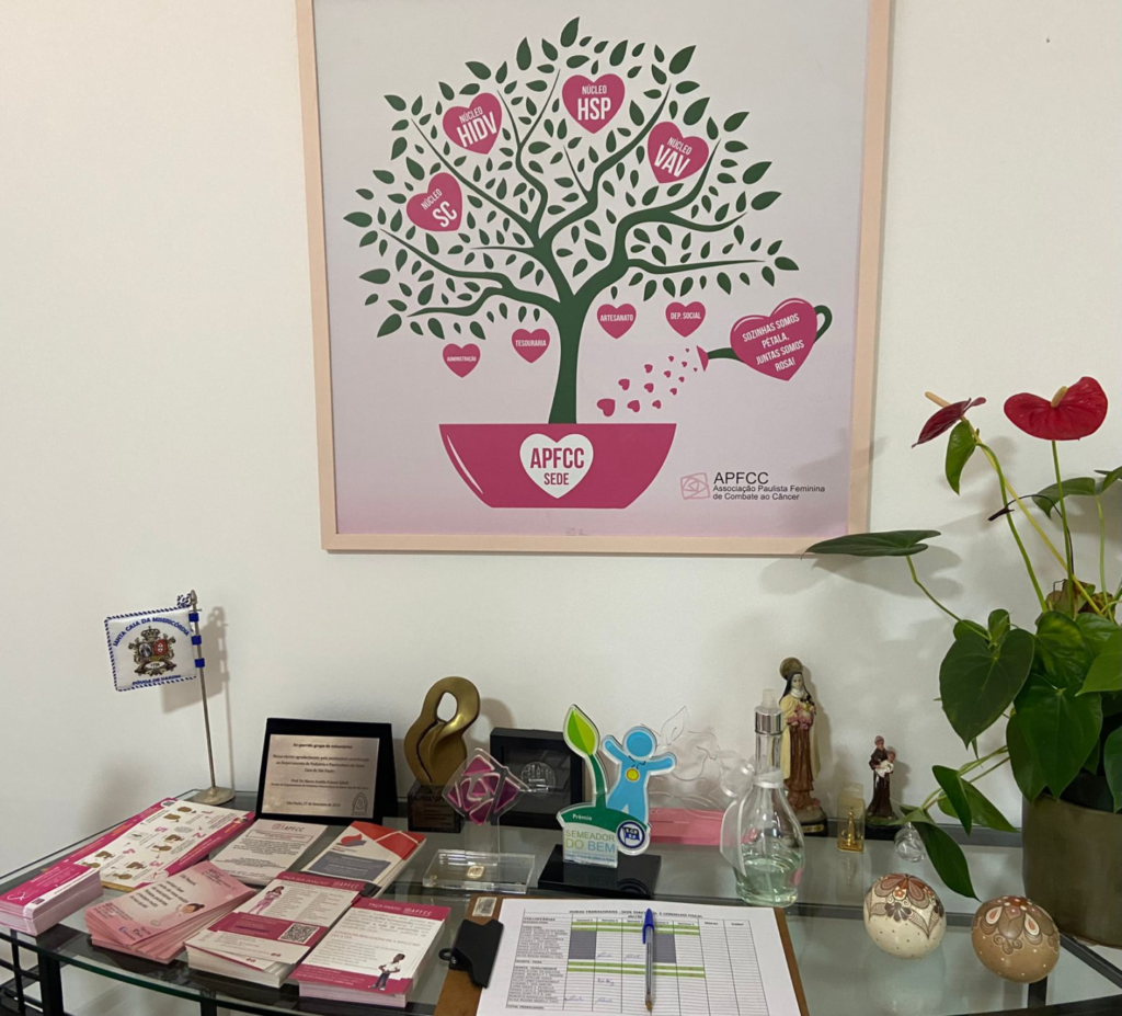 Na tarde do dia 14 de abril de 2026, a Coordenadora Voluntária da Costura da Boa Vontade, Ivone Herzig, e a Estagiária de Serviço Social, Emylle Pereira, visitaram a sede da APFCC (Associação Paulista Feminina de Combate ao Câncer), onde foram recebidas pela presidente Liana Petrella e pela tesoureira Jussara Santos.