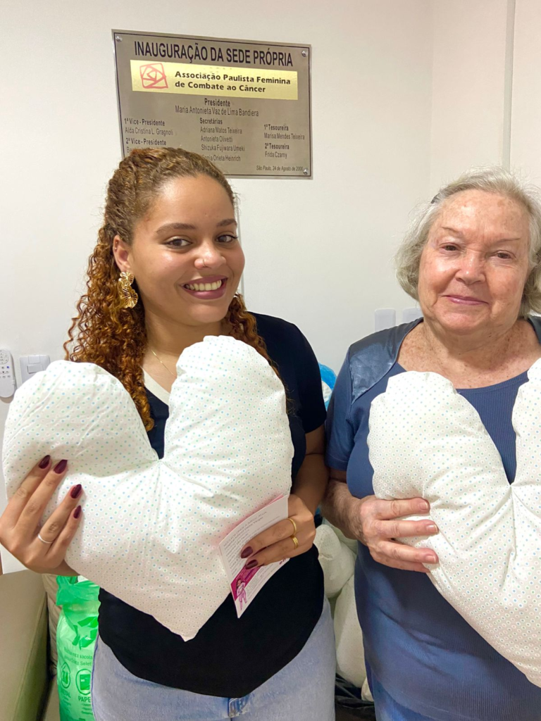 A ocasião marcou a entrega de 30 almofadas de coração destinadas a mulheres em tratamento de mastectomia no Hospital São Paulo, hospital que presta suporte a pacientes oncológicos. As peças foram confeccionadas pelas voluntárias do Grupo da Costura da Boa Vontade da CIP, cujas mãos transformaram tecido e dedicação em cuidado.