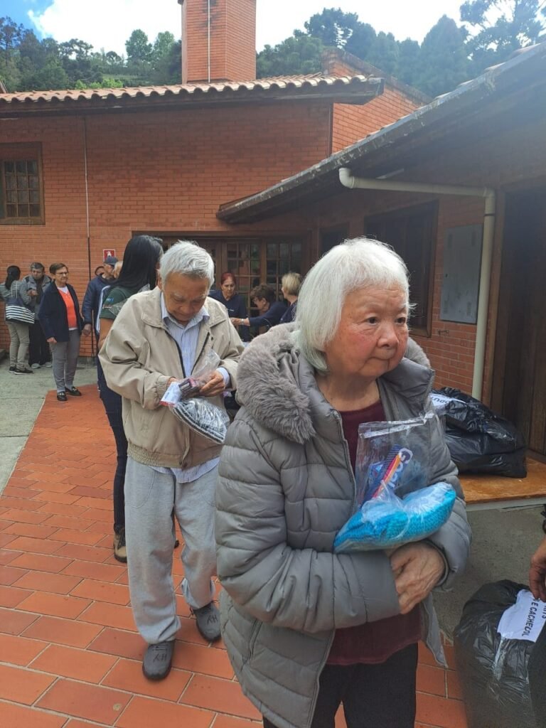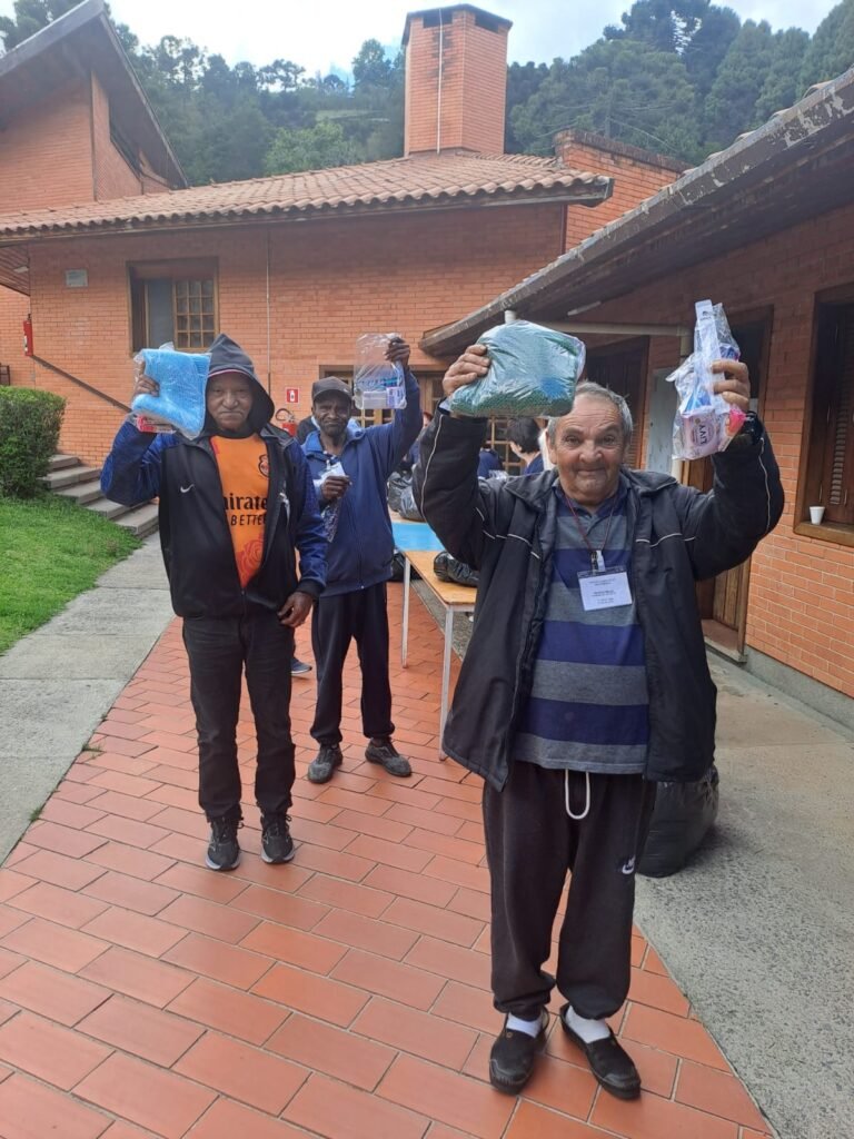 Na Casa de Campo de Estudos da CIP, a programação seguiu com a recepção de 100 idosos das instituições Casa da Divina Providência, Sanatório Santa Cruz, Nossa Senhora das Mercês e Sakura Home Residencial. Os convidados participaram de uma tarde festiva, com lanche preparado pela equipe da CIP, além de receberem kits de higiene, arrecadados nas Campanhas Sociais da Congregação, e conjuntos de gorro e cachecol confeccionados pelo Grupo de Costura da Boa Vontade.