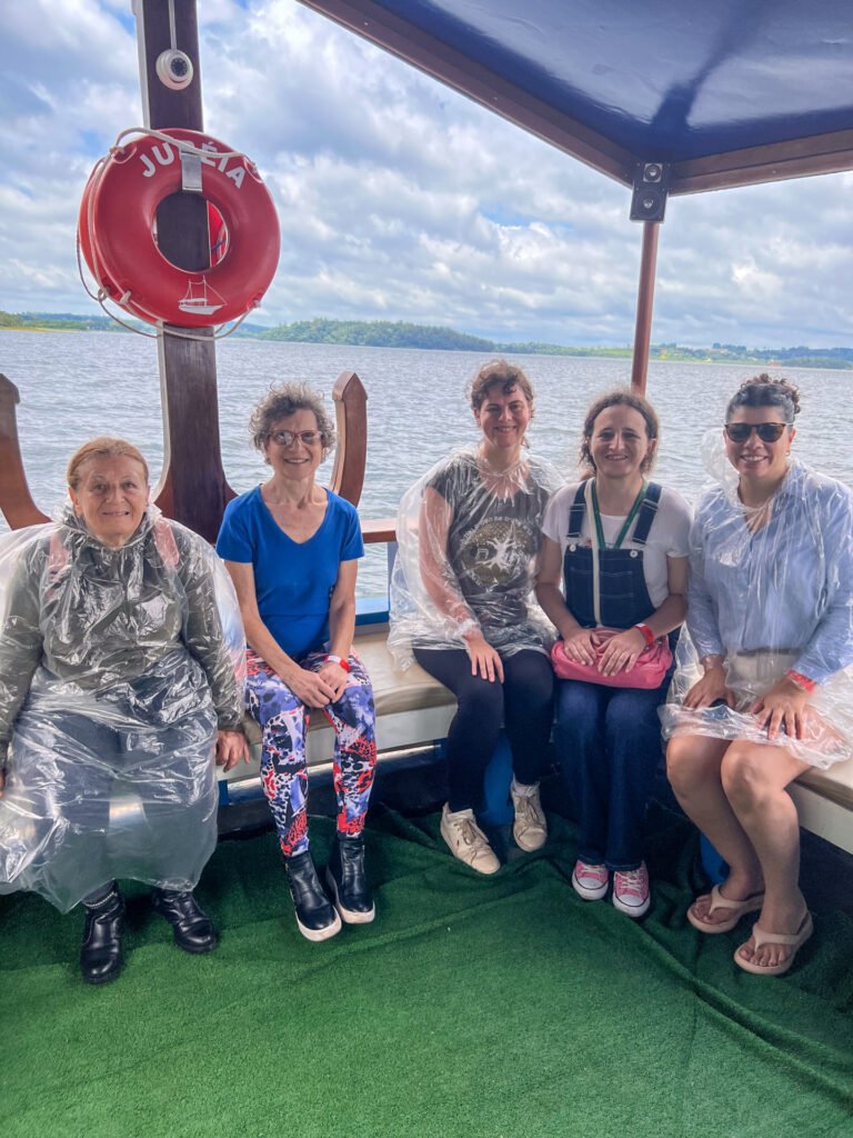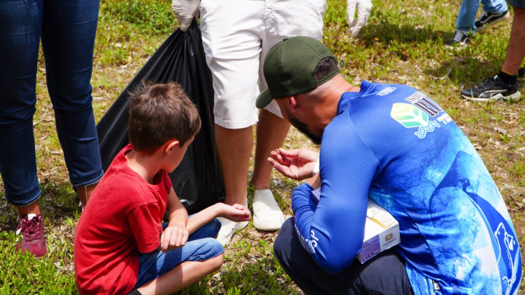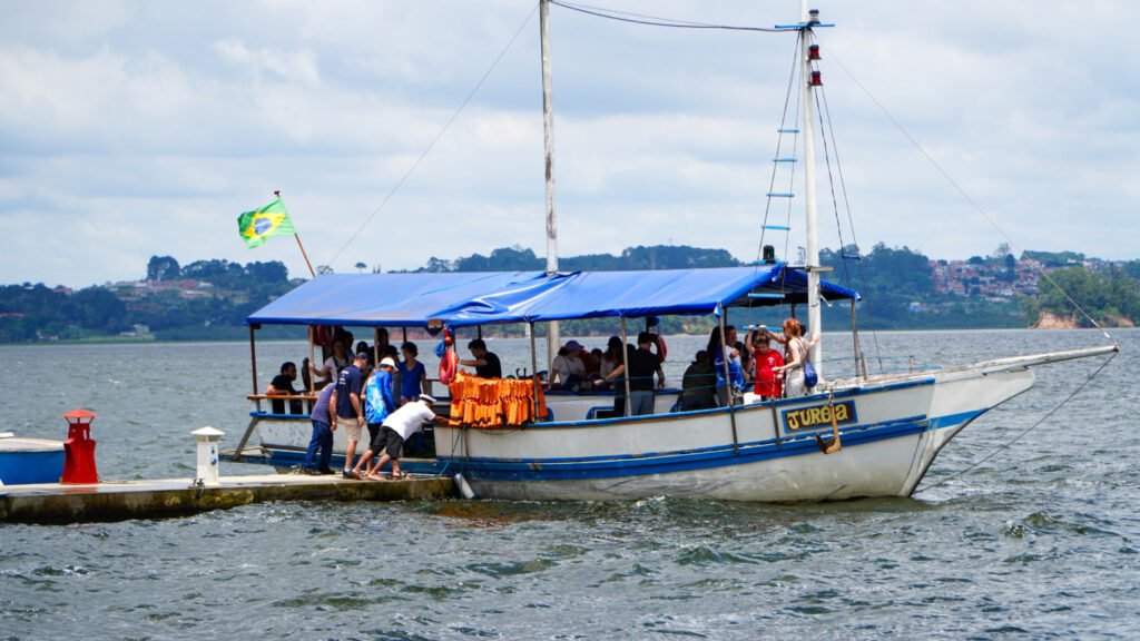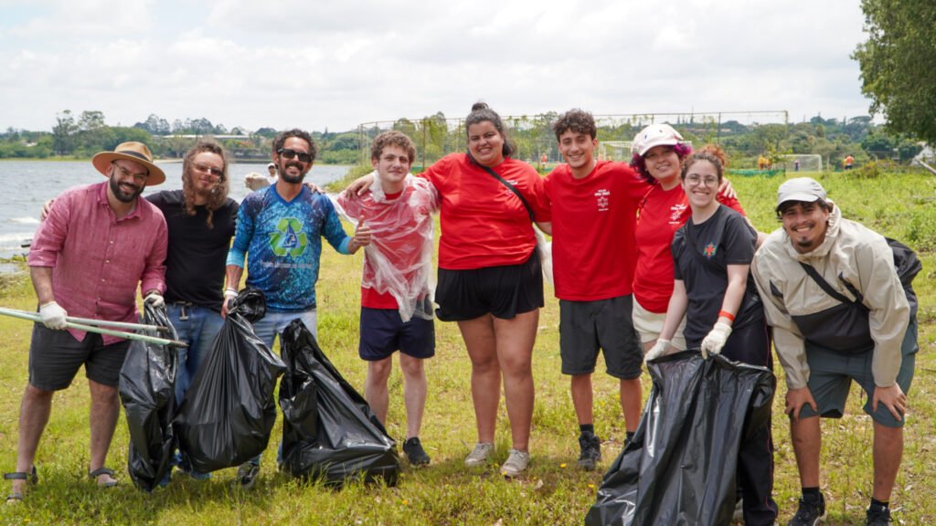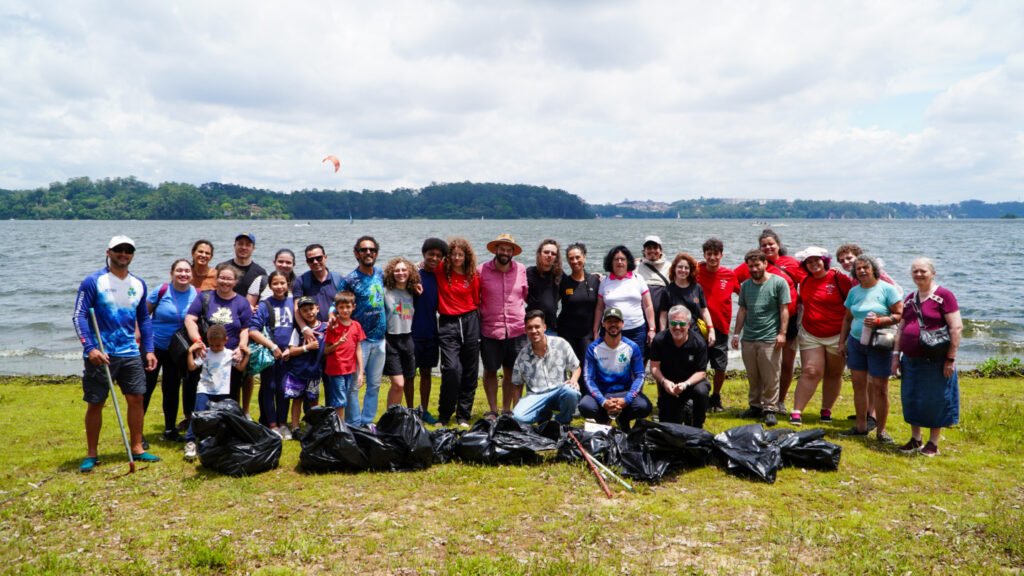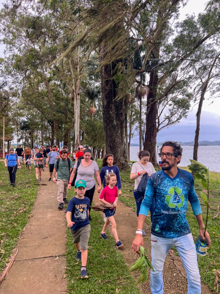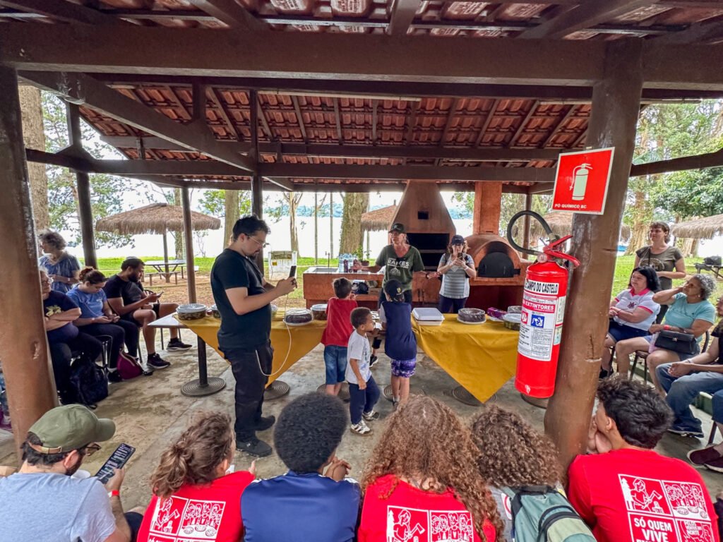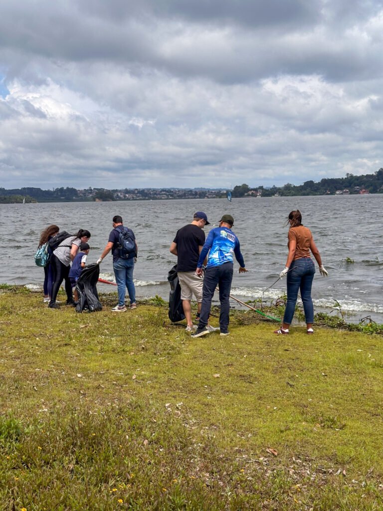 Na sequência, os participantes foram divididos em dois grupos. Um deles se dedicou à limpeza das margens da represa, recolhendo resíduos e chamando a atenção para a grande quantidade de lixo presente no local. O outro grupo participou de um passeio de barco, com explicações sobre a represa, seu funcionamento e sua importância ambiental. Após a primeira etapa, os grupos se revezaram nas atividades.