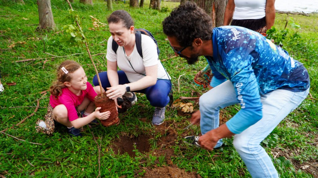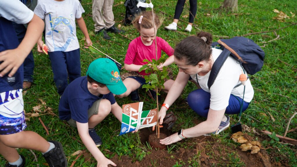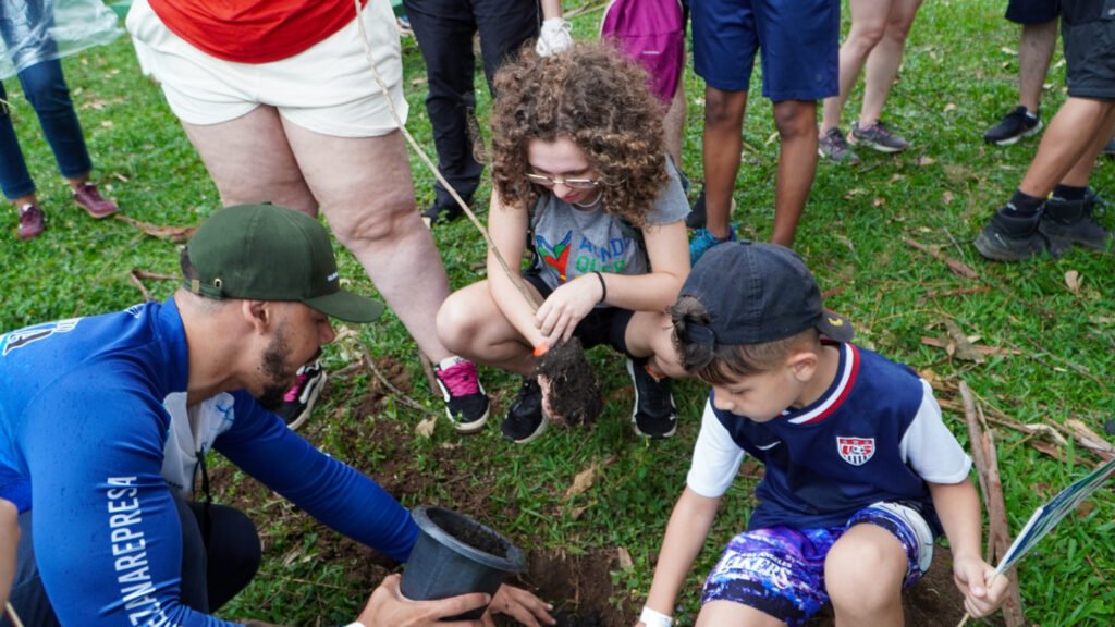 A programação foi concluída com o plantio de mudas na margem da represa, uma das tradições centrais de Tu Bishvat. Além do plantio coletivo, participantes também levaram mudas para cultivar em casa.