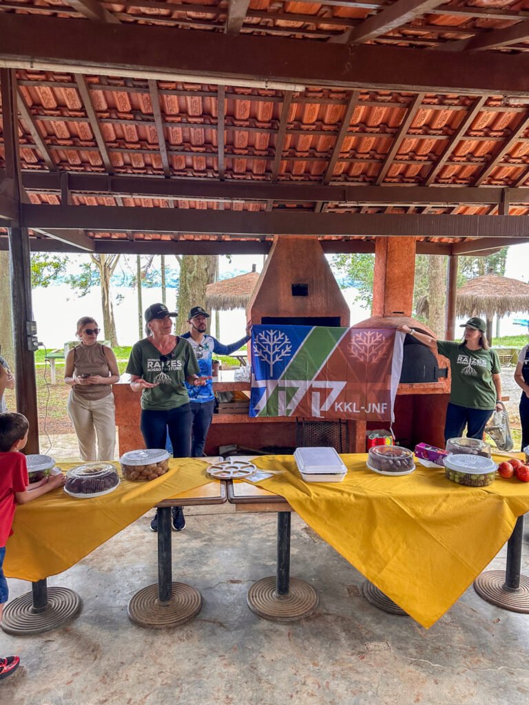 Encerradas as ações externas, todos se reuniram para um Seder especial de Tu Bishvat. O momento incluiu uma apresentação sobre o trabalho do KKL e a importância da preservação da natureza, conduzida por Simone Benz, diretora de Educação da instituição, além de uma conversa sobre as espécies tradicionais de Tu Bishvat e seus significados, com a rabina Kelita Cohen.
